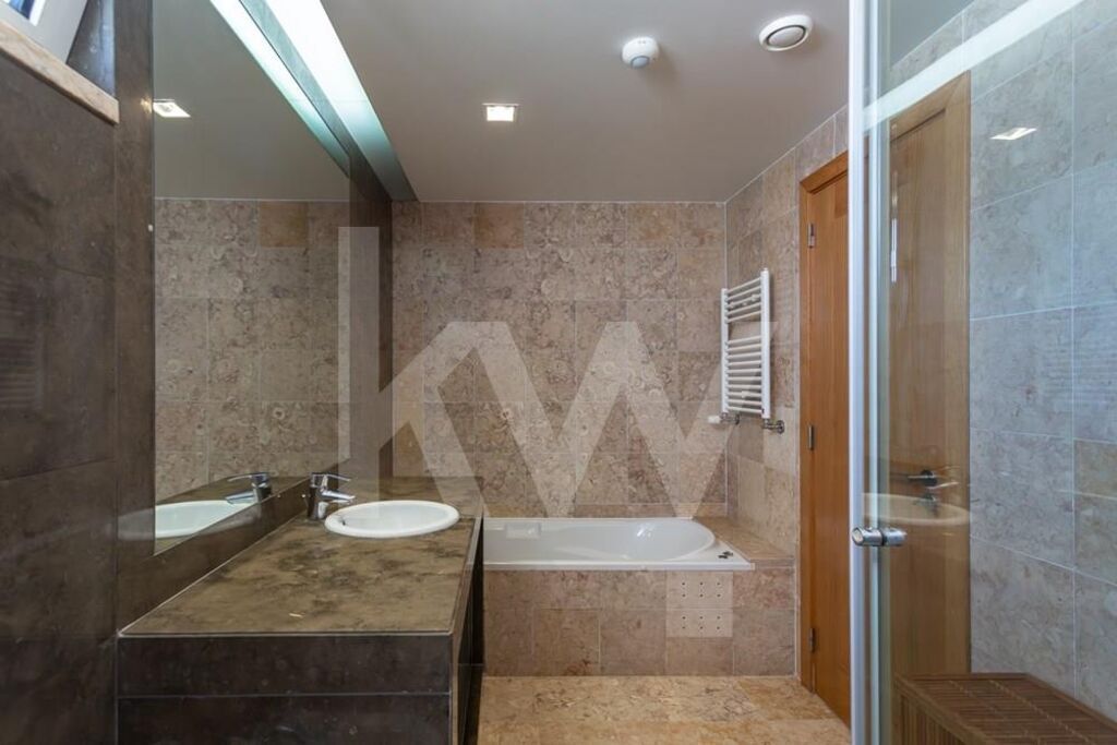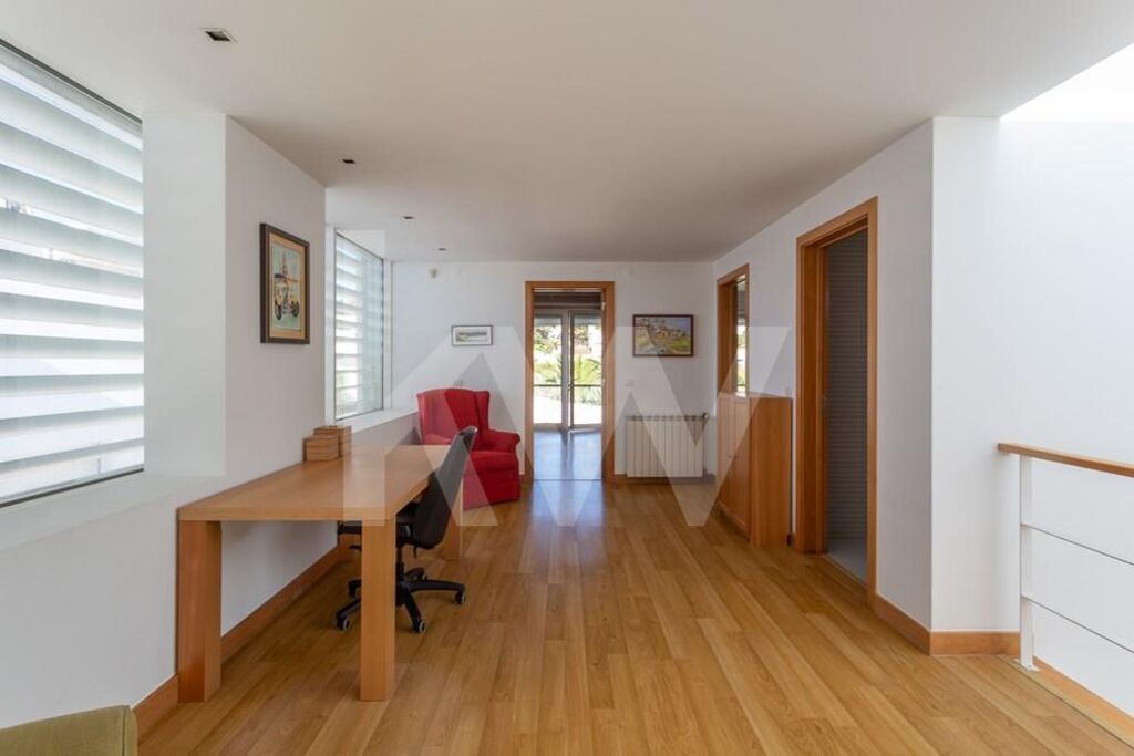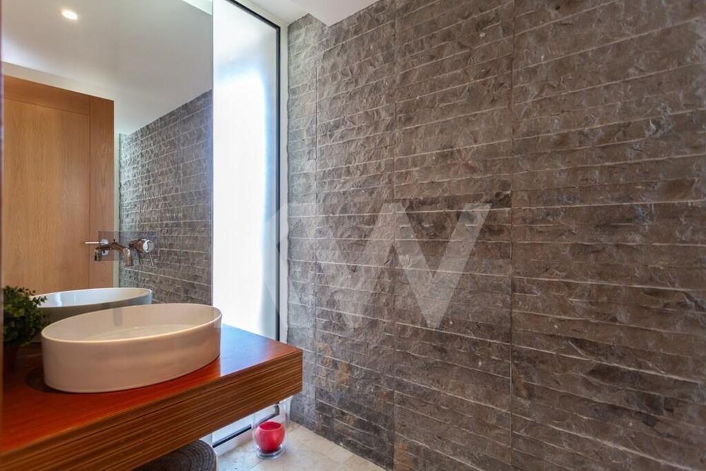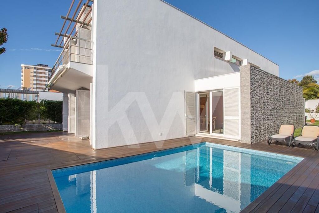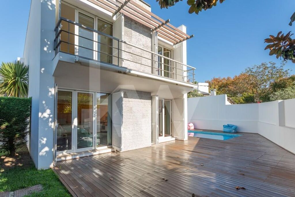 Constituída, por 3 pisos (Cave, piso 0 e piso1), com piscina privativa, e jardim em redor. Todos os espaços no Condomínio, estão em harmonia, em termos da privacidade, no acesso ás moradias e respetiva exposição solar. Em localização Premium, em São Pedro do Estoril, bem perto das praias e da estação de comboios, transportes públicos, escolas, serviços (bancos, bombeiros, centros comerciais, clinicas, farmácia, ginásio, hospital, jardins, jardins infância, padaria, policia, praias, serviços públicos, supermercado), e da estrada marginal e dos acessos á Auto-Estrada. A entrada principal da moradia, é efetuada pelo rés do chão (Piso 0), com hall generoso. Através das escadas, é acedido ao piso inferior (Piso-1), e ao piso superior (Piso1). Zona com muita luz, pela claraboia existente, no telhado. O Piso -1, é totalmente amplo, sendo um espaço de vários usos. Sala de Cinema, Escritório, entre outros usos. Tem janelas altas, que lhe conferem luz no interior. No Piso 0 (Rés do Chão), encontra-se a zona social. Ampla sala com zonas distintas, de estar, de jantar, de descanso e leitura e/ou zona de TV. Com duas saídas para o jardim e piscina. Também, se pode aceder á cozinha pela sala, com porta de acesso á mesma. No hall de entrada e central do piso, o acesso á sala, é efetuado pelo lado direito. Pelo lado esquerdo, encontra-se a Casa de banho social, zona de arrumo de casacos e malas, lavandaria, despensa e ampla cozinha moderna e equipada, com zona de refeições, e acesso ao jardim, e zona lateral com acesso á garagem.No piso superior (Piso1), junto ás escadas, existe uma zona central, que funciona como passagem para os quartos e casas de banho. Como é uma zona generosa, poderá ser uma sala pequena de estar, escritório, ou biblioteca. Esta zona privada, tem quatro quartos, dois deles com suíte, dividida em duas zonas. Do lado direito, encontramos, dois quartos com roupeiro, um deles com suíte, e uma casa de banho social. No lado oposto, encontramos a suíte principal, com closet e acesso á varanda. No acesso, ao outro quarto, existe uma zona com grande closet/roupeiro, com muita arrumação.Junto á piscina e jardim, tem um grande deck de madeira, com espaço para a zona de lazer (mesa e cadeiras). Em volta da moradia e jardim, existem zonas com flores e árvores, garantindo a privacidade.